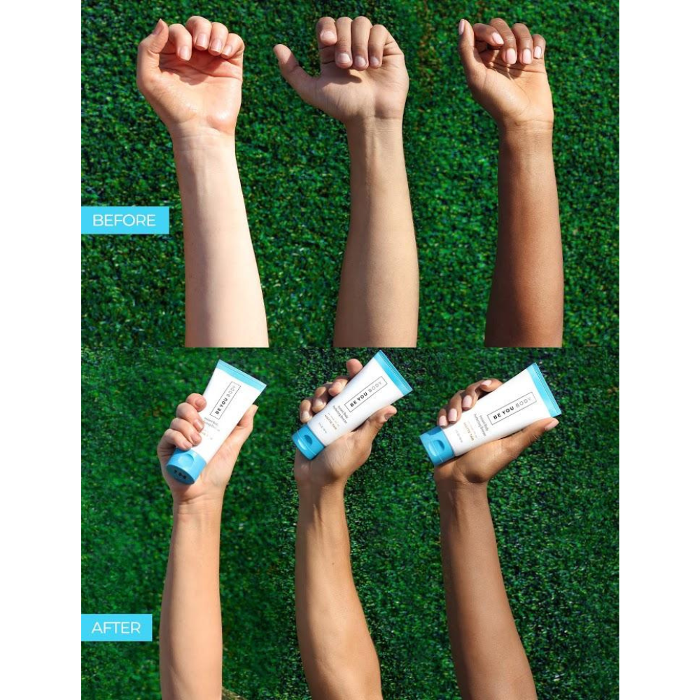 BE YOU BODY perfectioneert het uiterlijk van je huid met een subtiele, natuurlijk ogende bruine tint. Deze slimme bronzer geeft direct resultaat en verbetert zichtbaar de huidtextuur, zonder zelfbruiner of chemische geur.