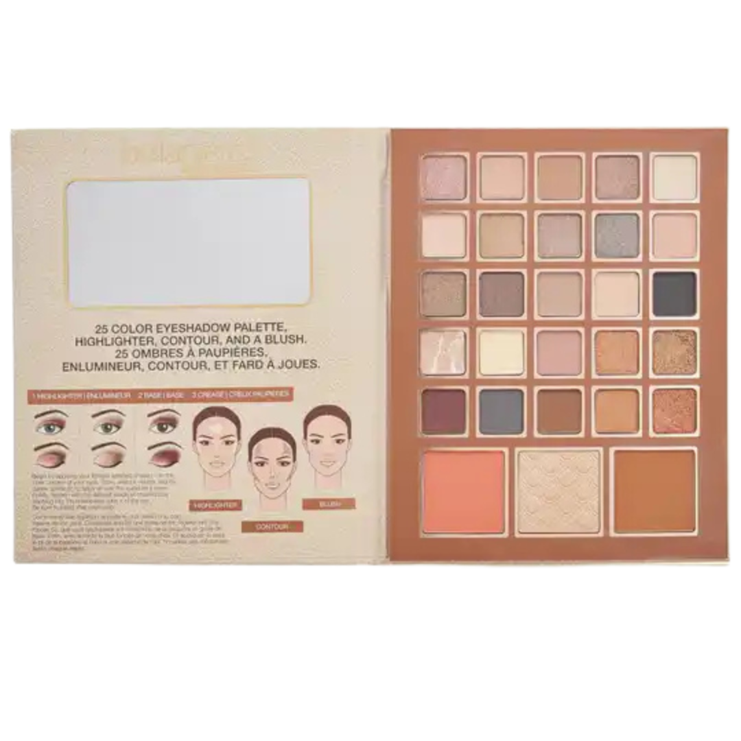 Met 25 oogschaduwtinten in matte, glanzende en foliekleuren, én extra’s voor je gezicht: 1 bronzer/contour, 1 blush en 1 highlighter. Hiermee creëer je moeiteloos elke gewenste look – van subtiel nude tot opvallend glam.